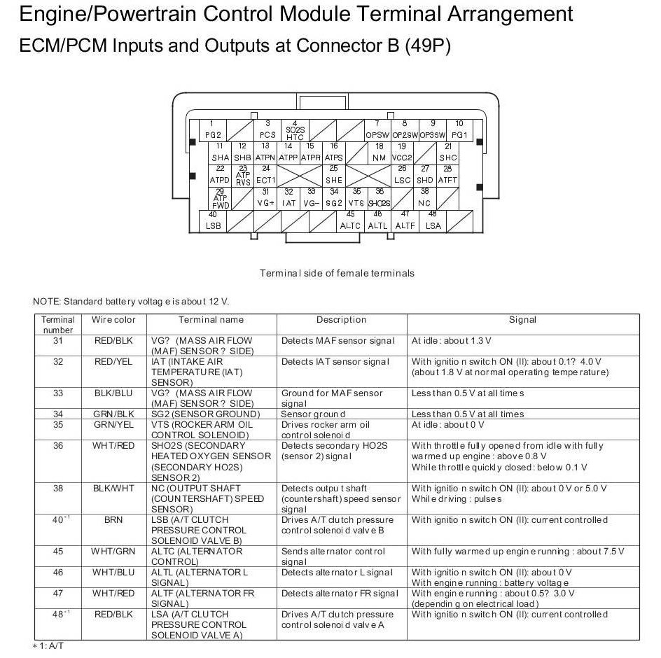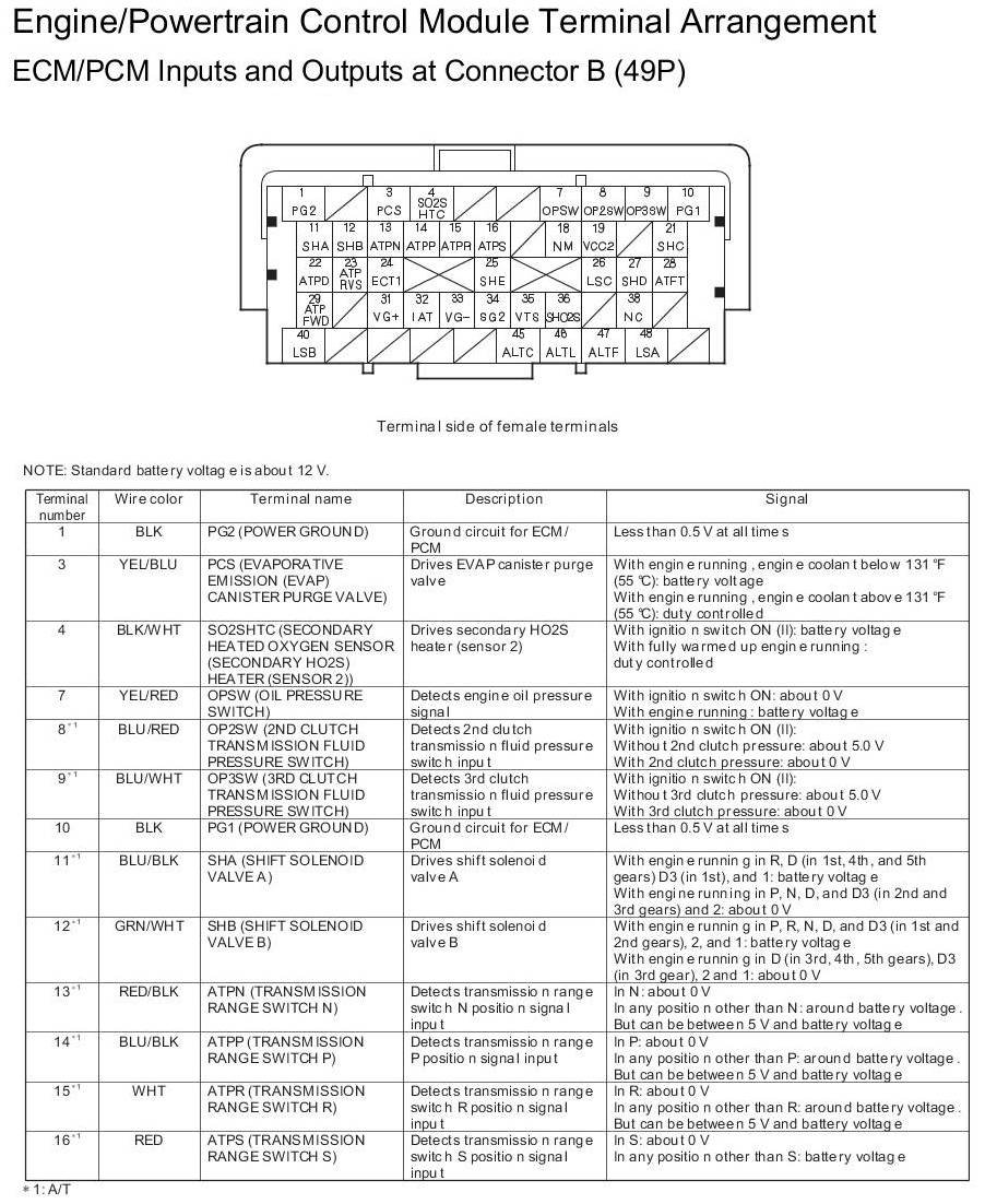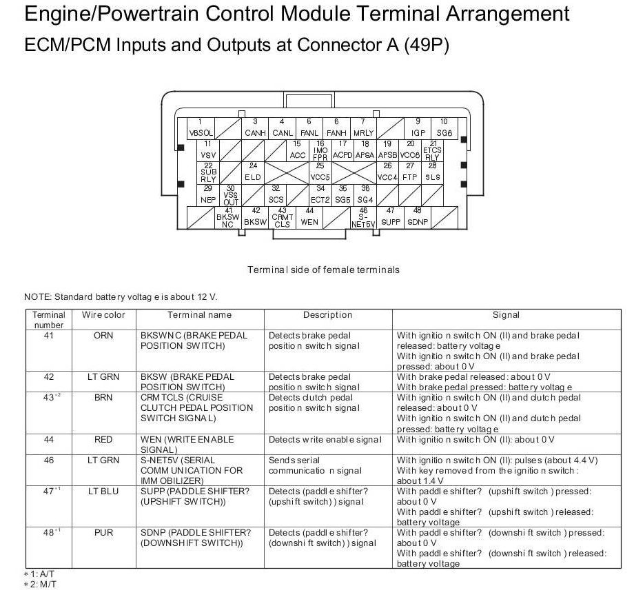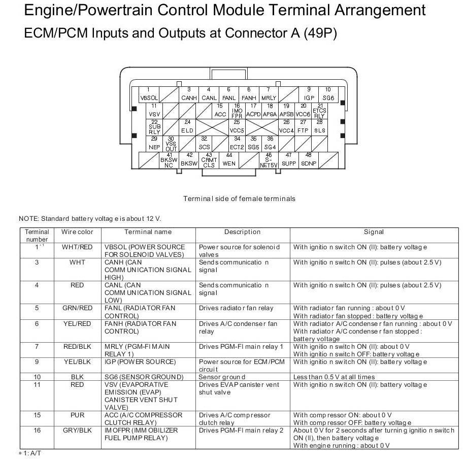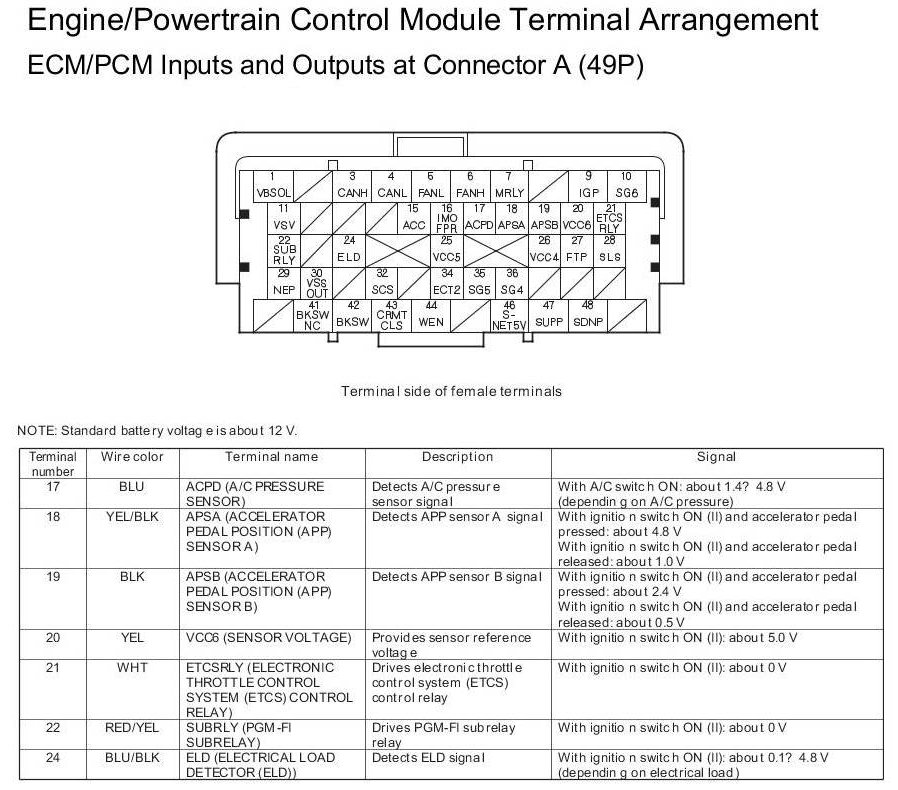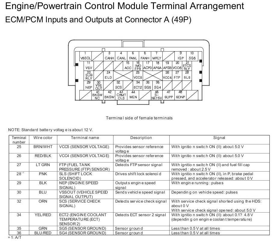 ECM/PCM Inputs and Outputs at Connector A