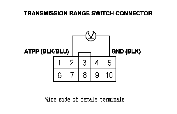 26. Measure the voltage between transmission range switch connector terminals No. 2 and No. 5.
