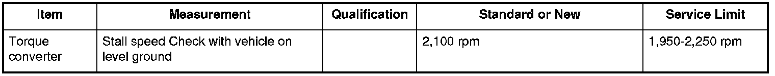 Torque Converter Specifications (A/T)