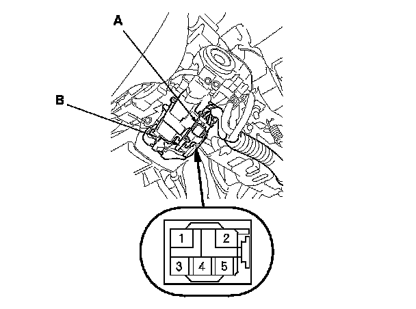 3. Disconnect the 5P connector (A) from the ignition switch (B).