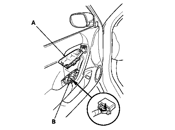 2. Disconnect the 37P connector (B) from the power window master switch.