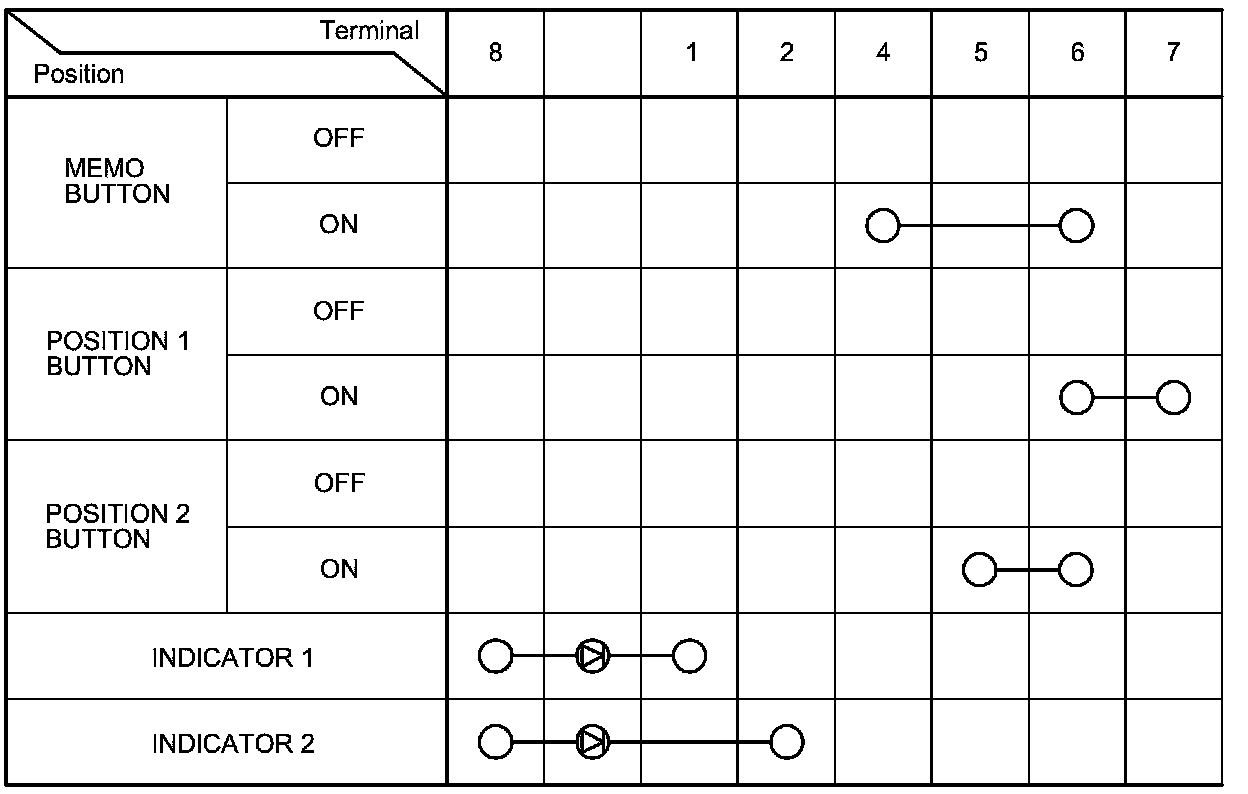 4. Check for continuity between the terminals in each switch position according to the table.