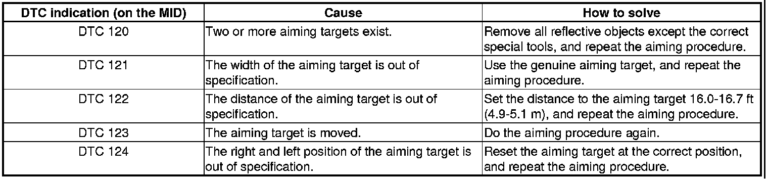 Incomplete aiming will also cause the MID to indicate certain temporary DTCs, refer to the DTCs (if the aiming is incomplete).