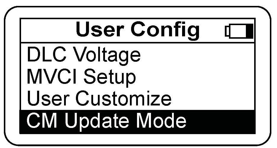 3. Press the ENTER button on the MVCI to see the User Config menu. Select CM Update Mode.