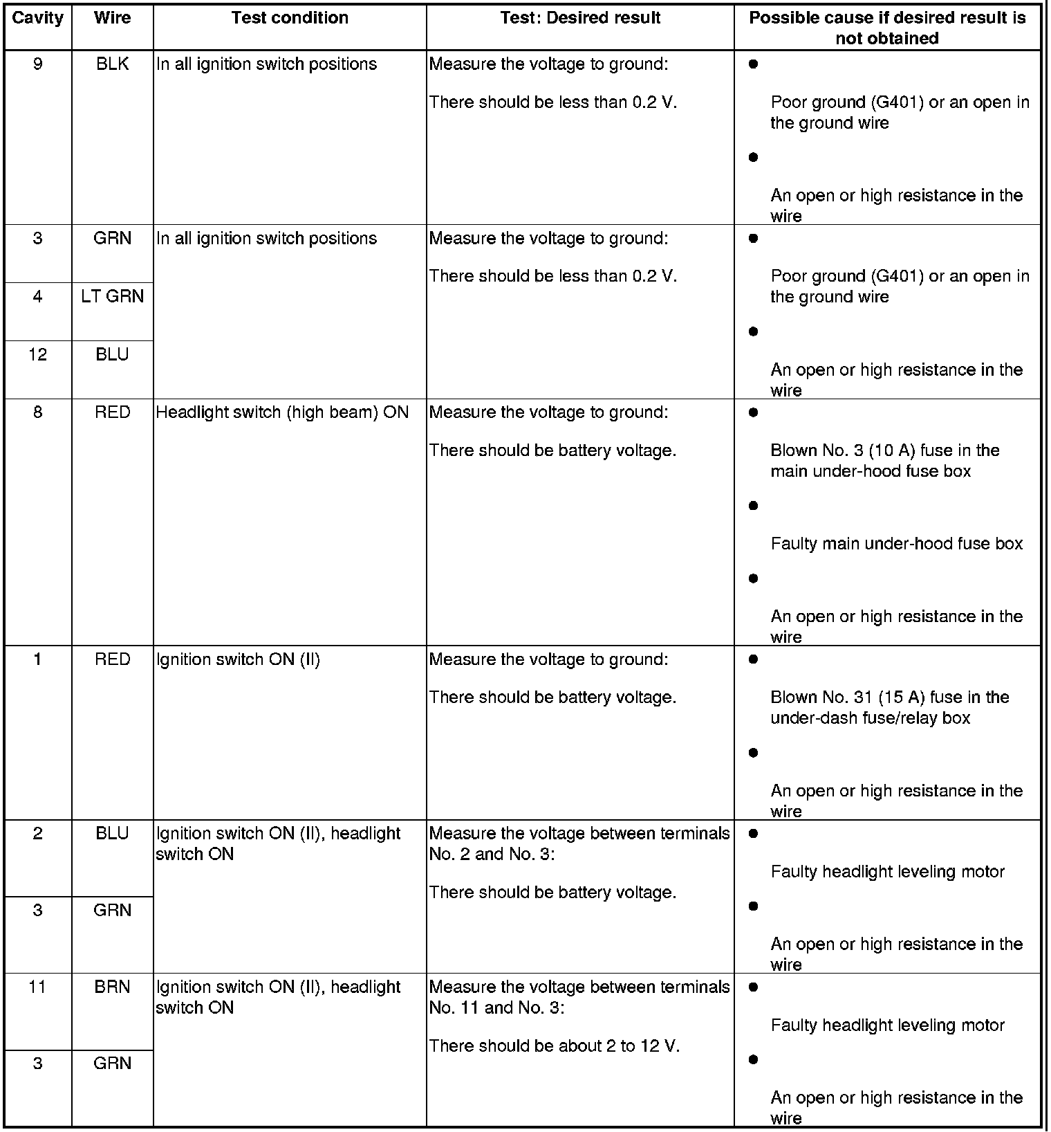 Headlight Leveling Control Unit Input Test/Replacement