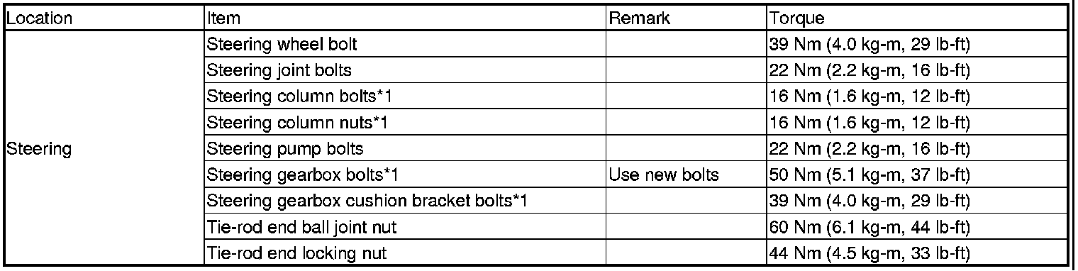 Refer to the Service Data for the bolts/nuts not indicated here.