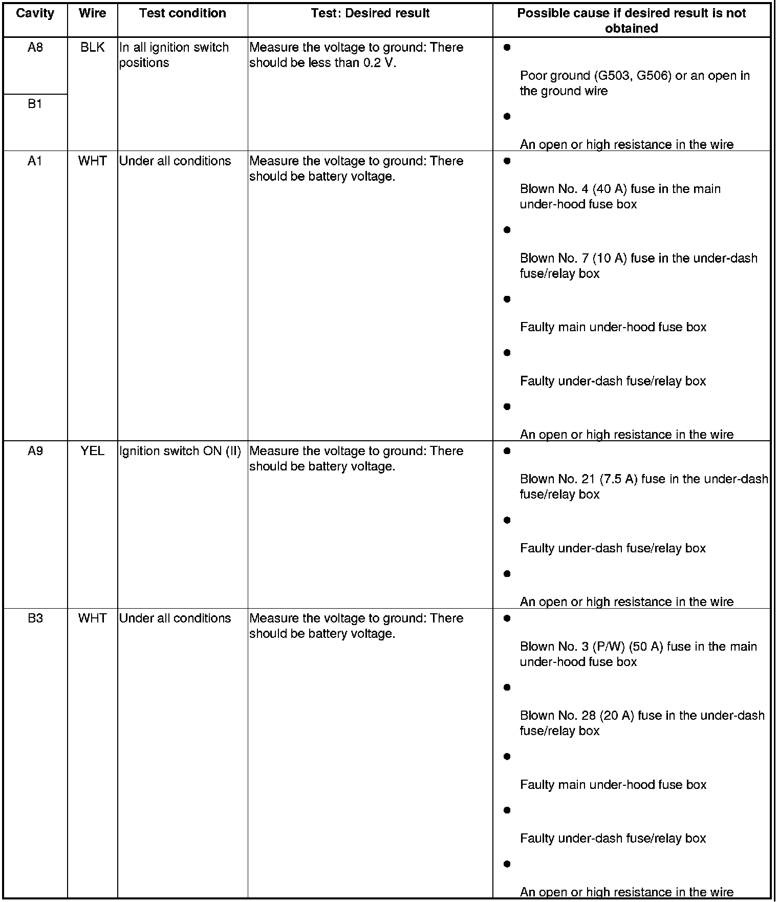 - If all the input tests prove OK, the control unit must be faulty; replace it.