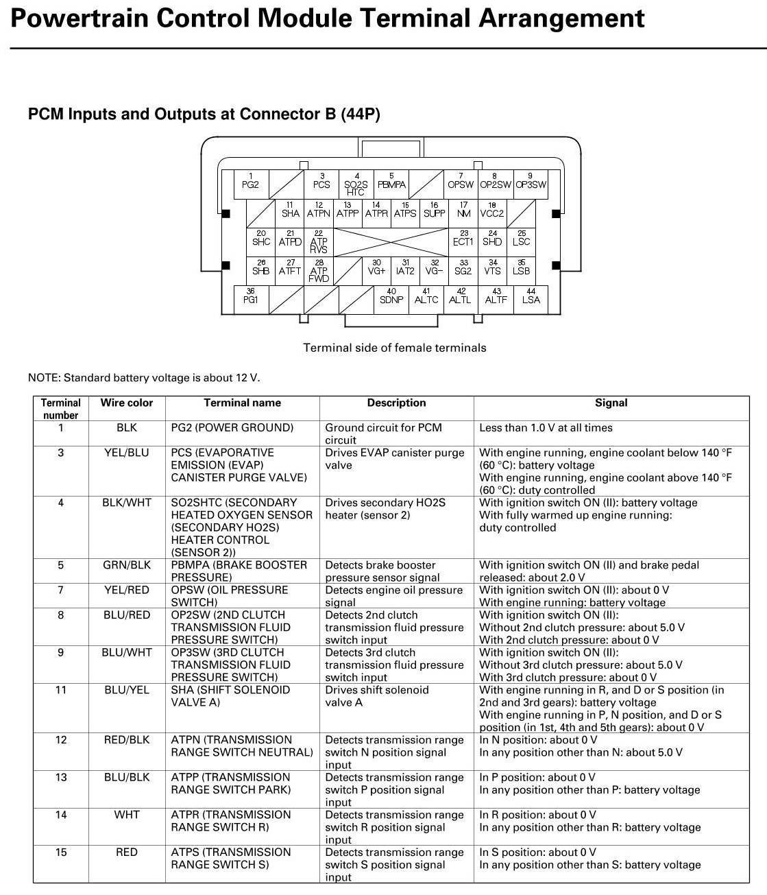 PCM Inputs and Outputs at Connector A