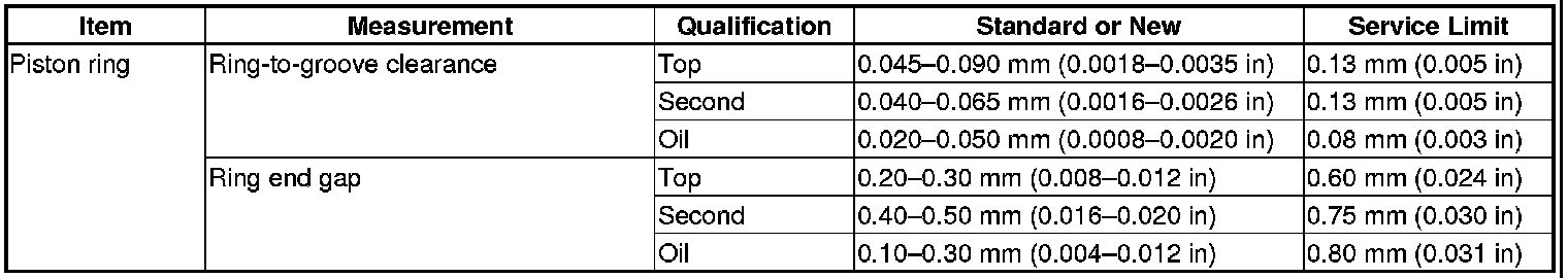 Piston Ring Specification(s)