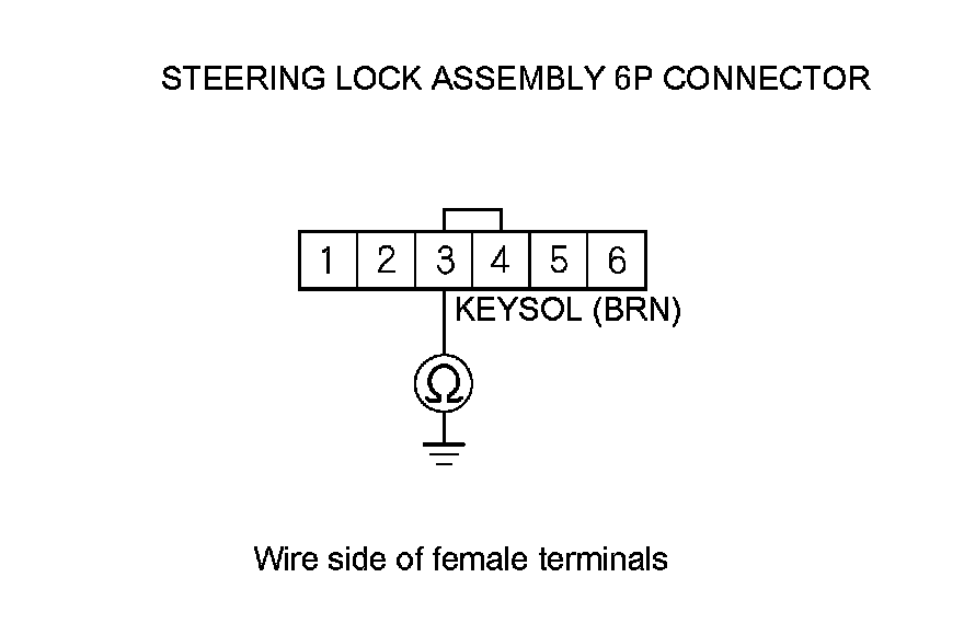 6. Check for continuity between the steering lock assembly 6P connector terminal No. 3 and body ground.