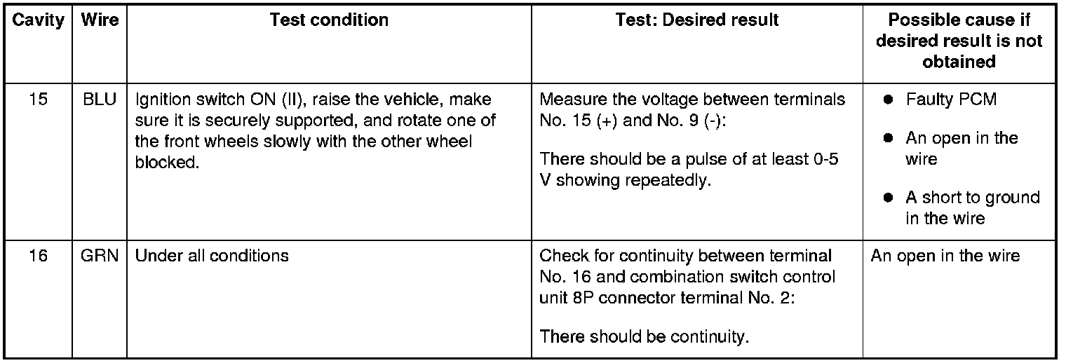 6. Reconnect the connector to the control unit, and do these input tests at the following connector.