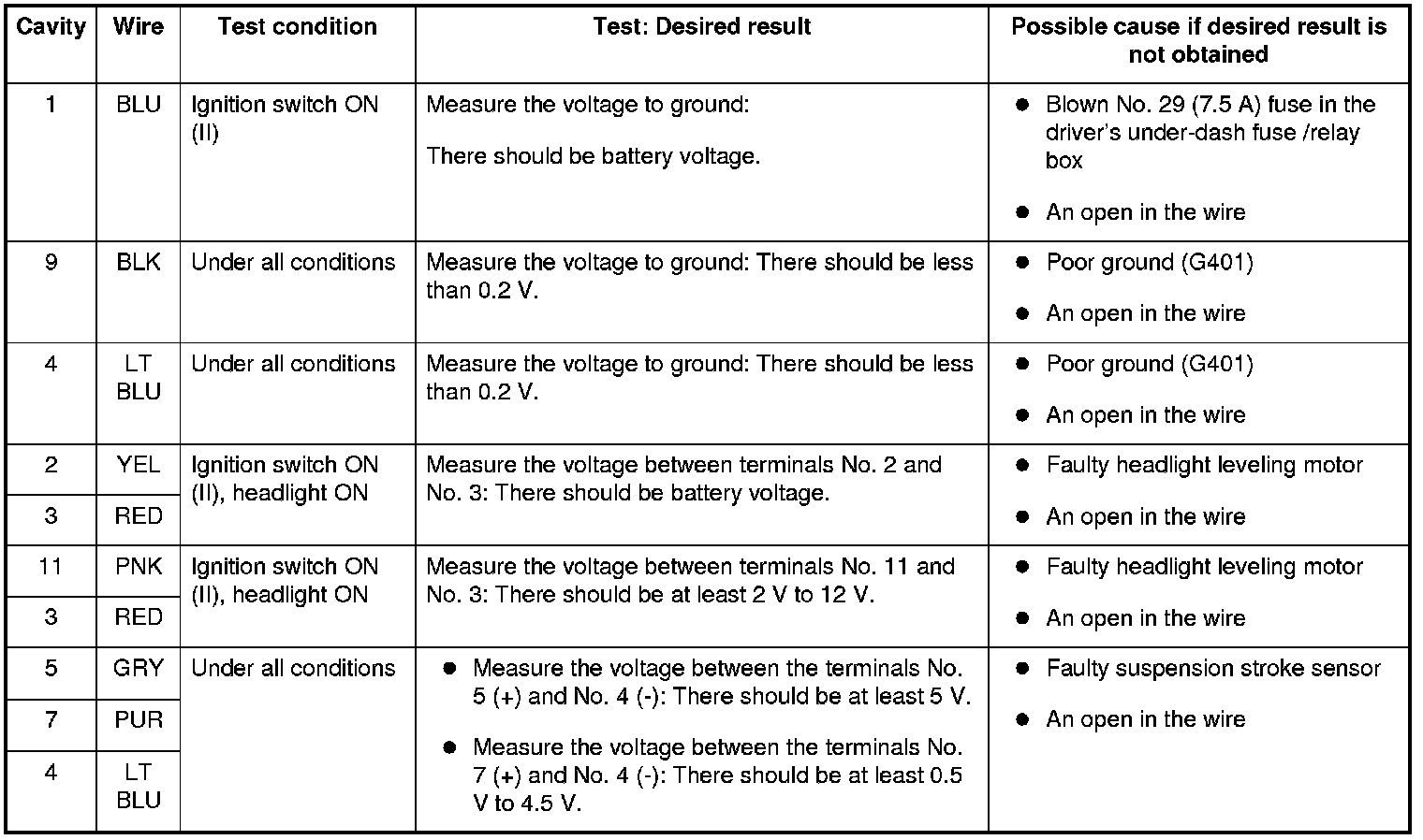 - If all the input tests prove OK, replace the headlight leveling control unit.