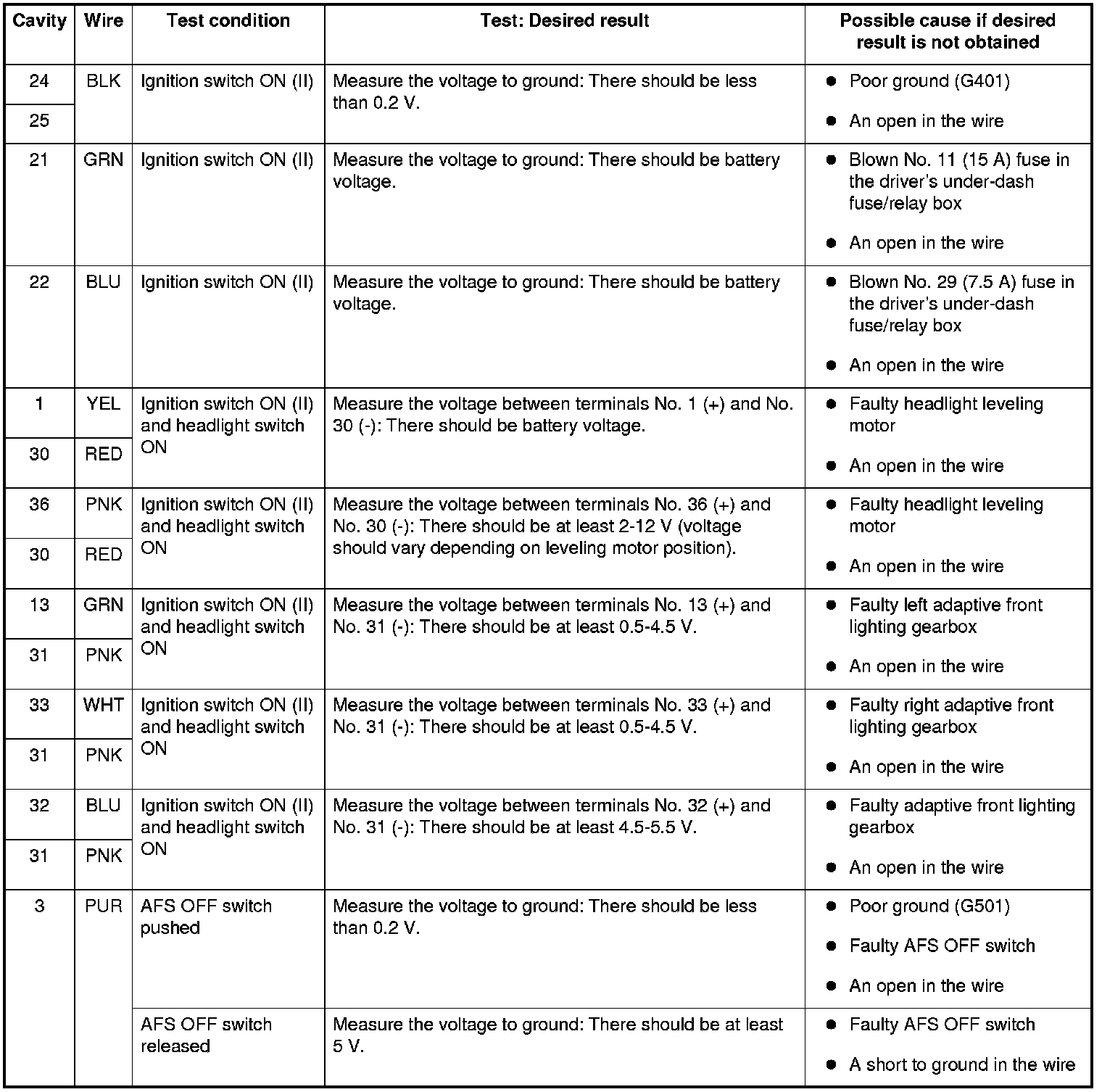 Adaptive Front Lighting Control Unit Input Test (With AFS)