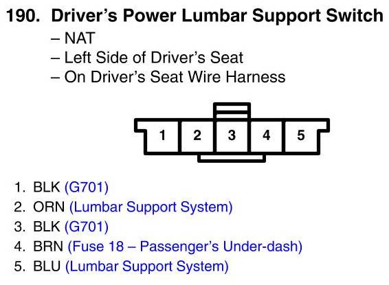 View 190 - Driver's Power Lumbar Support Switch Connector View