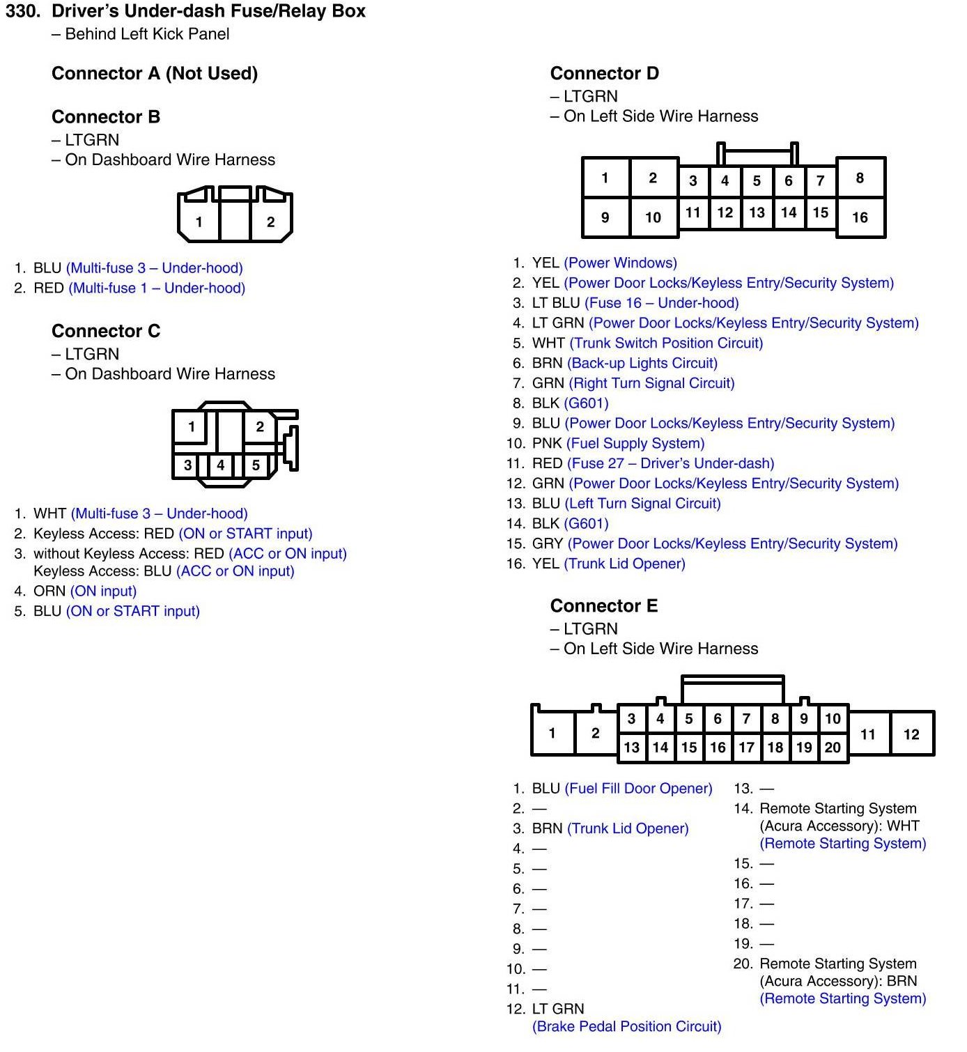 View 330 - Driver's Under-dash Fuse/Relay Box Connector View