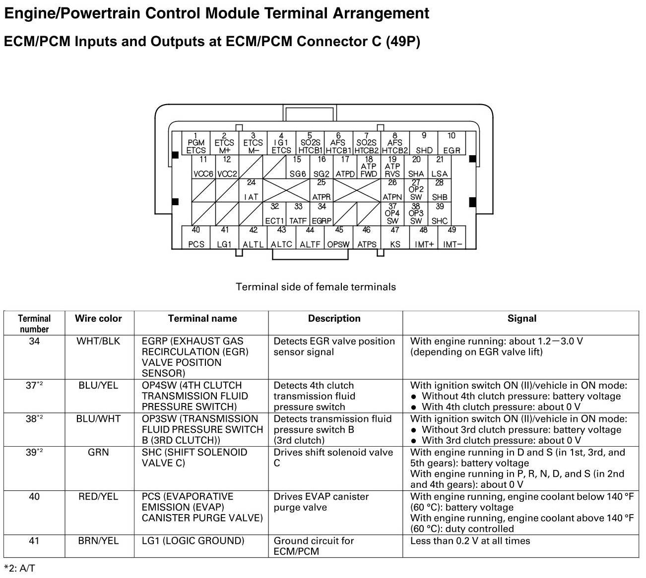 ECM/PCM Inputs and Outputs at Connector C