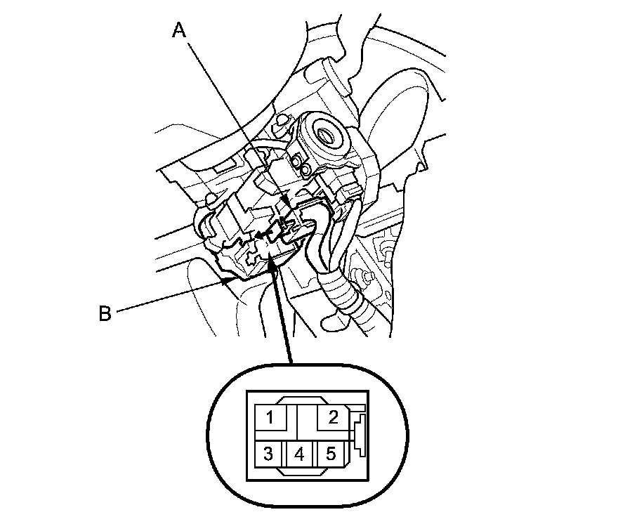 3. Disconnect the 5P connector (A) from the ignition switch (B).