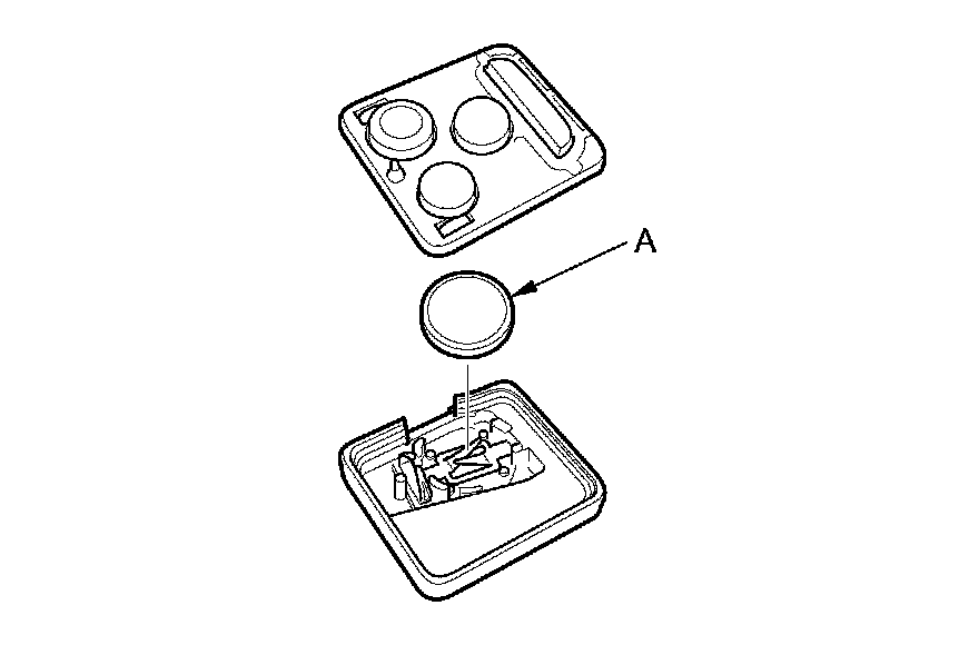 4. Replace the transmitter battery (A) with a new one (CR1616), and try to lock and unlock the doors with the transmitter by pressing the lock or unlock button five or six times.