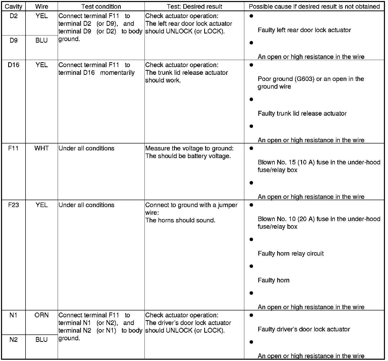 NOTE: Before testing, make sure the No. 15 (10 A) fuse in the under-hood fuse/relay box is OK.