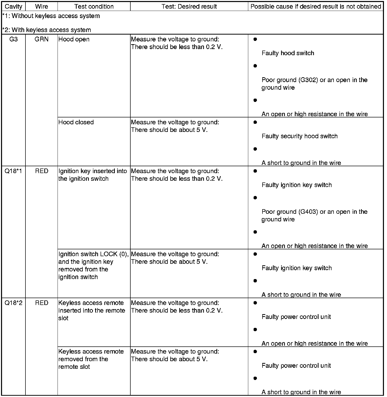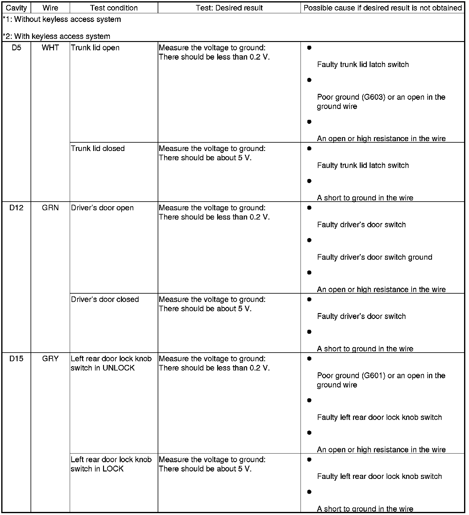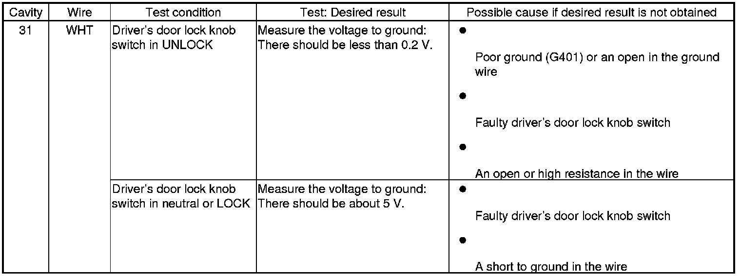 Keyless/Power Door Locks/Security System (Driver's and Passenger's MICU, Door Multiplex Control Unit, and Front Passenger's Power Window Switch) Input Test