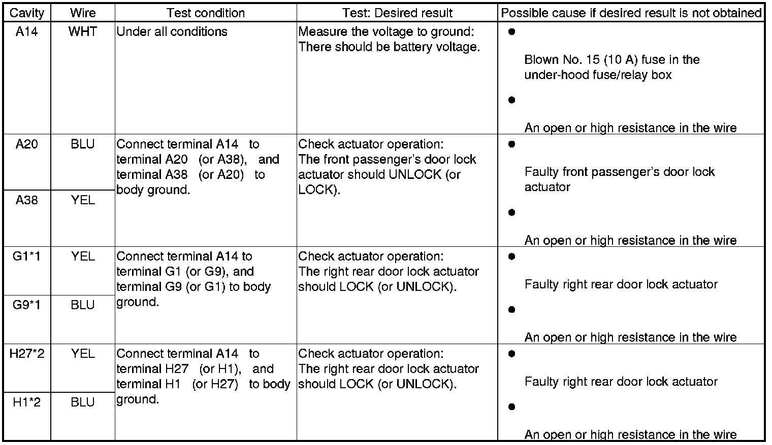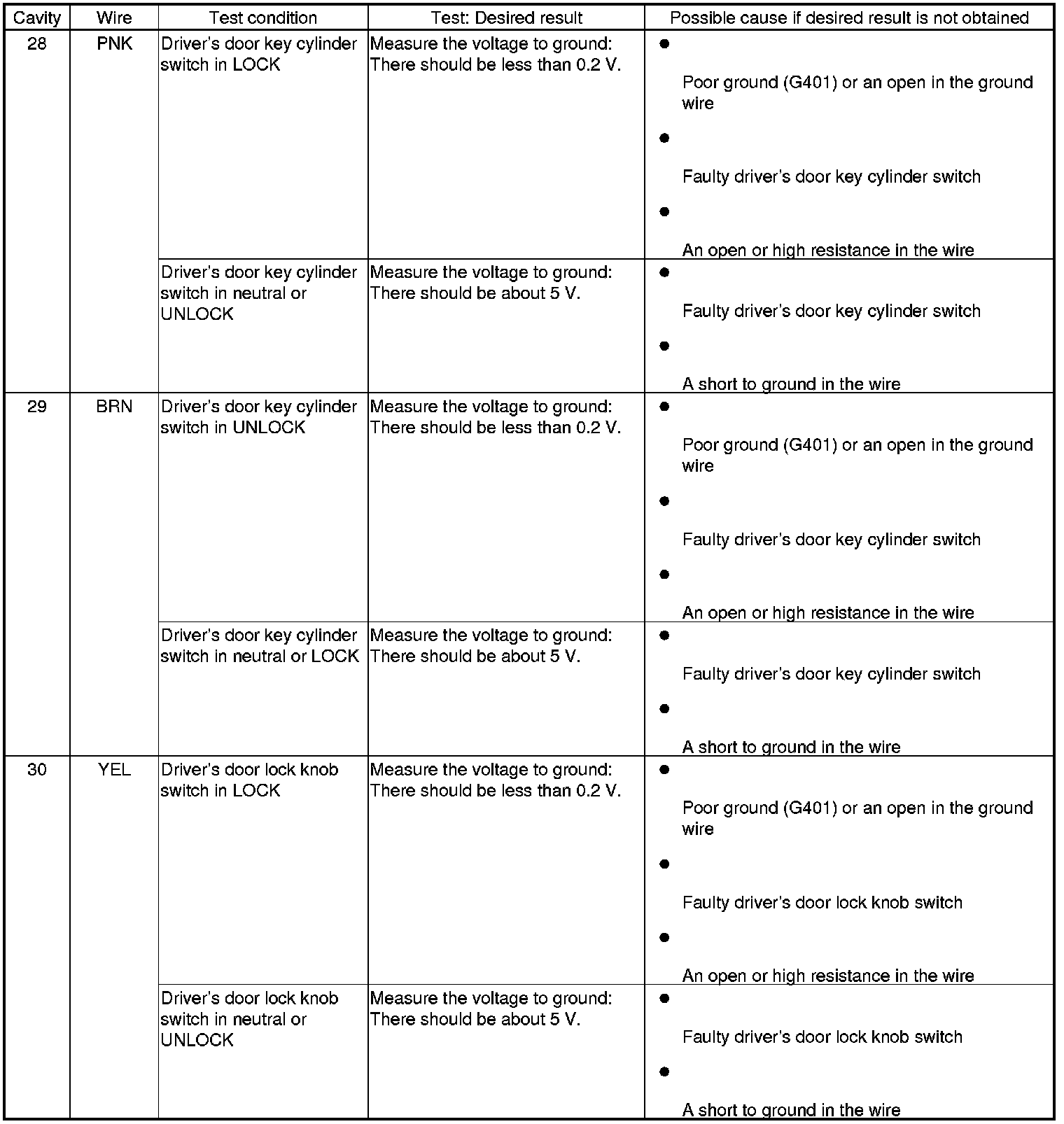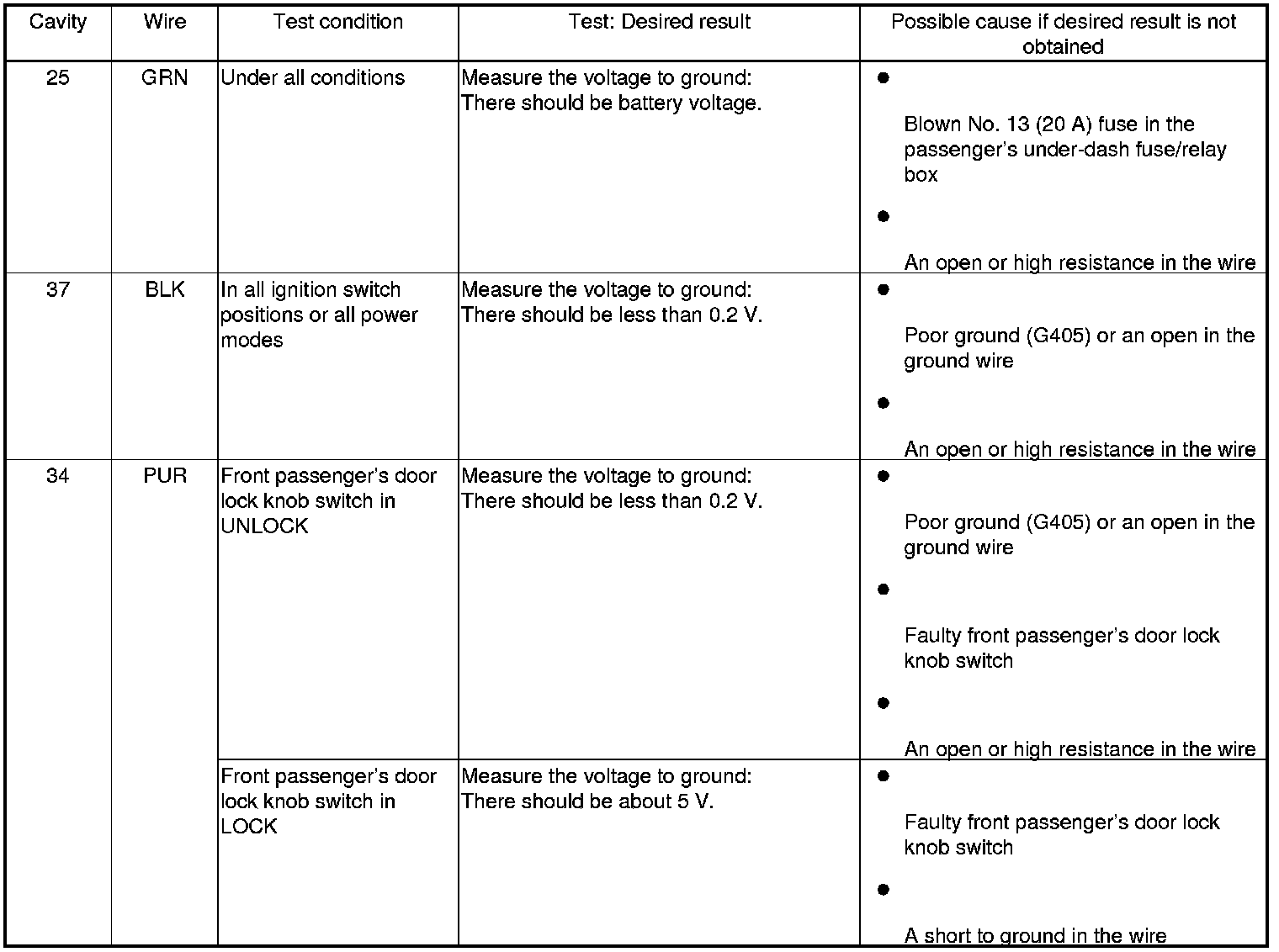 Keyless/Power Door Locks/Security System (Driver's and Passenger's MICU, Door Multiplex Control Unit, and Front Passenger's Power Window Switch) Input Test