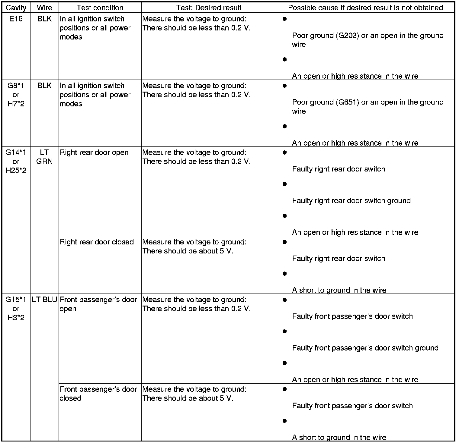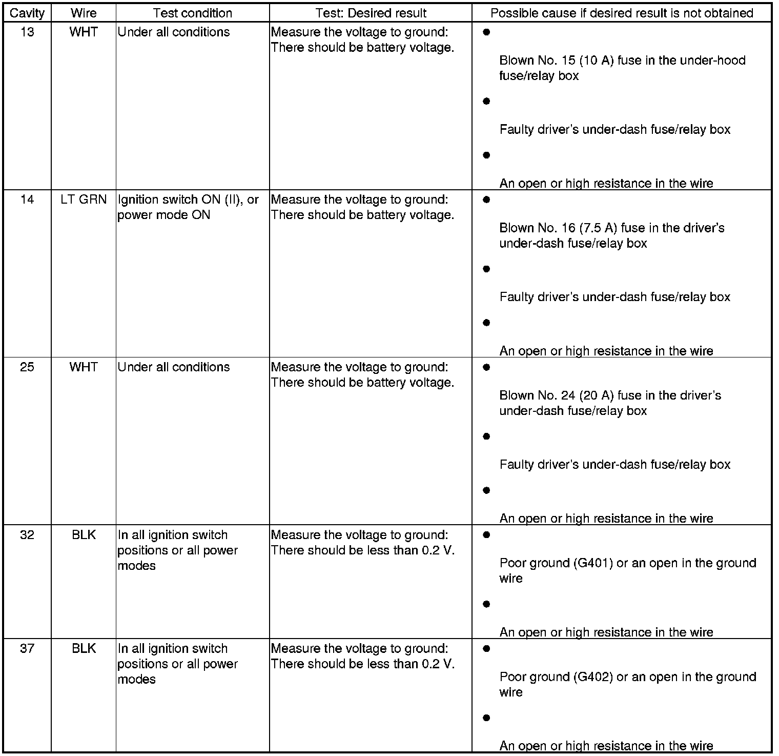 12. Reconnect the connectors to the passenger's under-dash fuse/relay box, and do the following input tests: