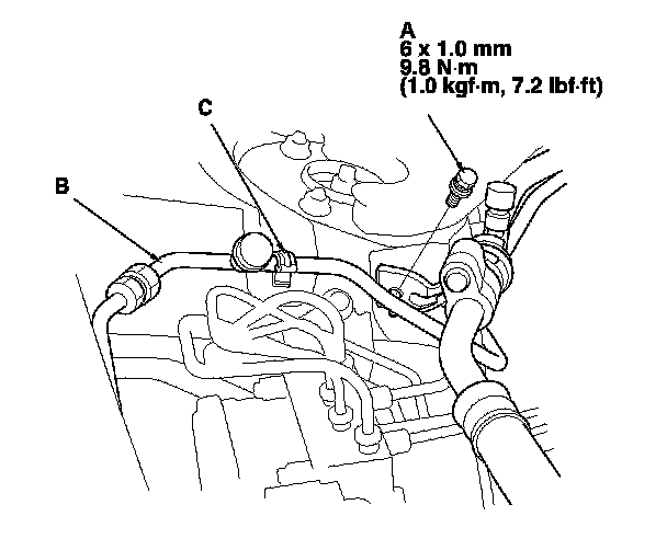 3. Disconnect the receiver line (B) from the clamp (C).