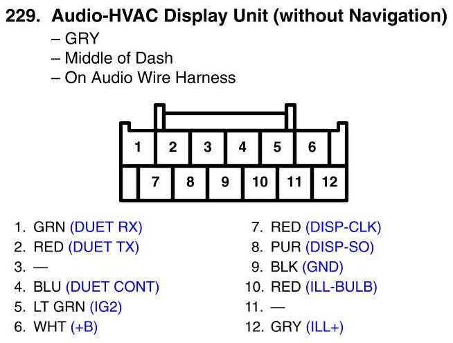 Audio-HVAC Display Unit Connector View (Without Navigation)