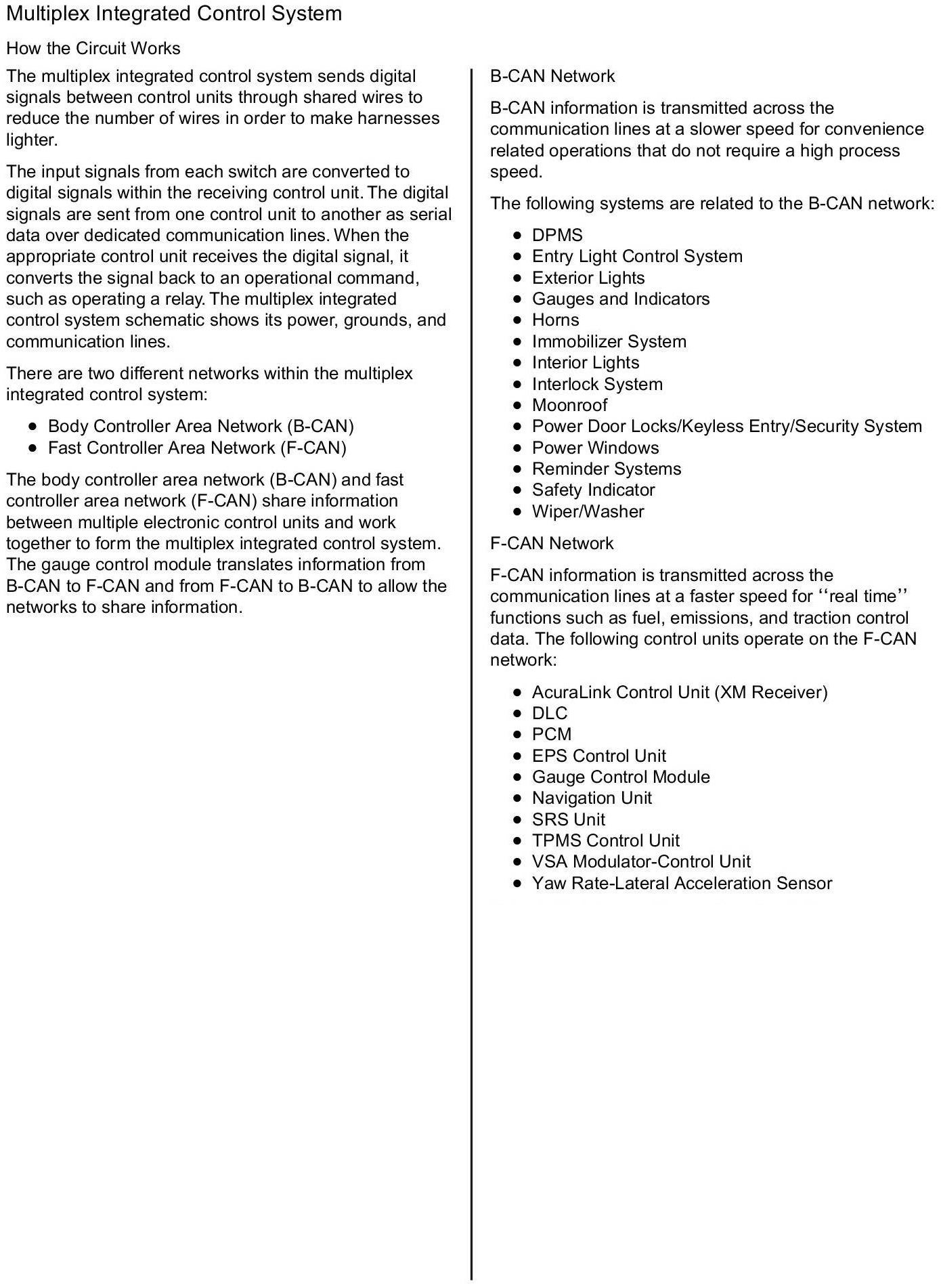 Home >> Acura >> 2010 >> TSX V6-3.5L >> Repair and Diagnosis >> Powertrain Management >> Computers and Control Systems >> Information Bus >> Description and Operation >> How The Multiplex Integrated Control System Circuit Works