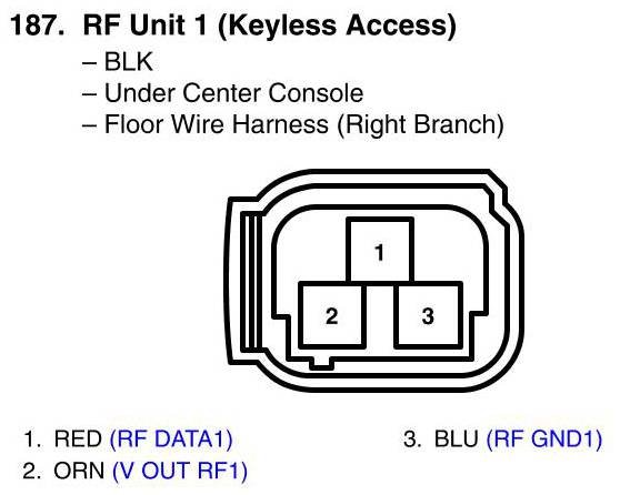 View 187 - RF Unit 1 Connector View (Keyless Access)