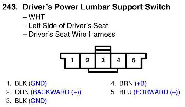 View 243 - Driver's Power Lumbar Support Switch Connector View