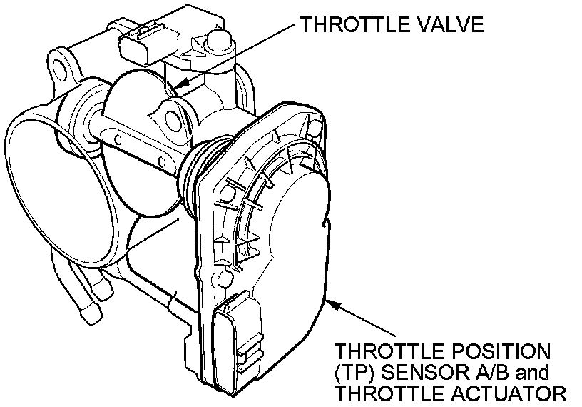 The electronic throttle control system consists of the throttle actuator, throttle position (TP) sensor A/B, accelerator pedal position (APP) sensor A/B, the electronic throttle control system (ETCS) control relay, and the PCM.