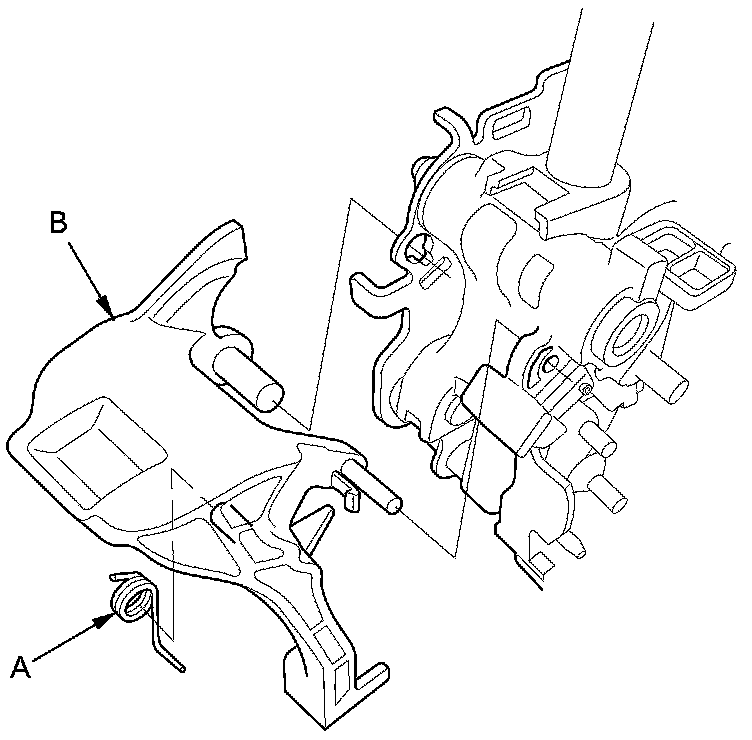 3. Remove the release spring (A) from the shift lock release (B).