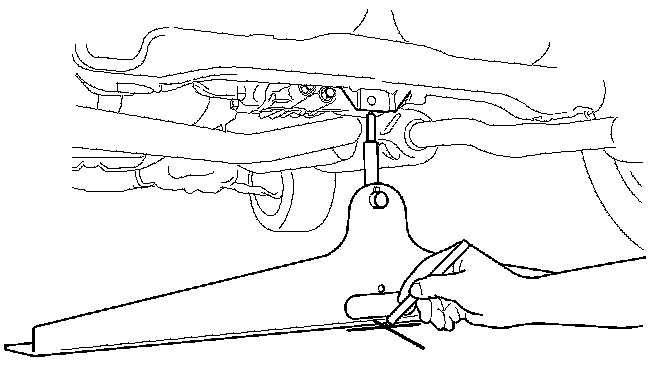 6. Rear area of the vehicle: Place the centering stand under the rear jack point, then mark the floor at the centerline of the tool.