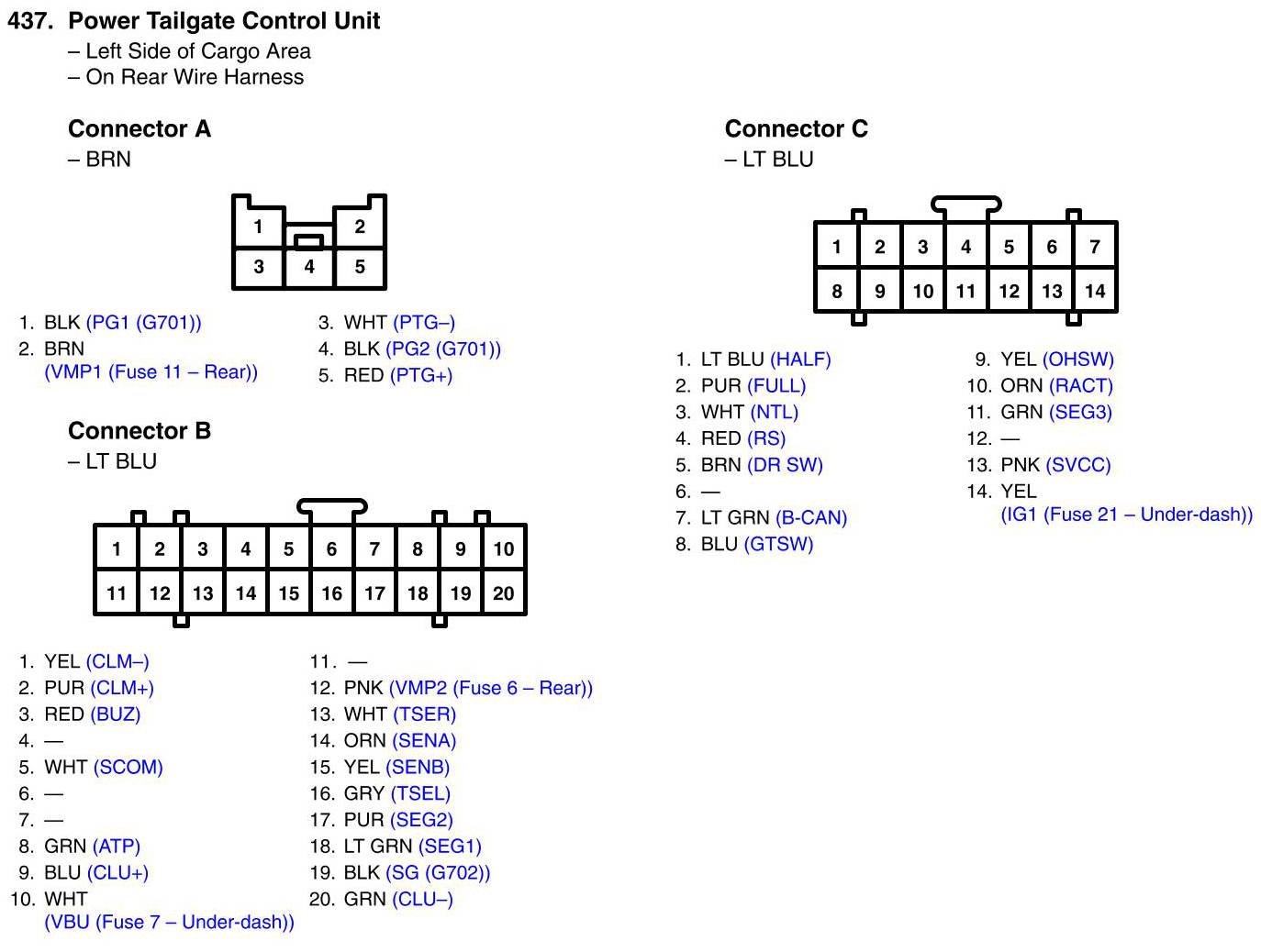 View 437 - Power Tailgate Control Unit Connector View
