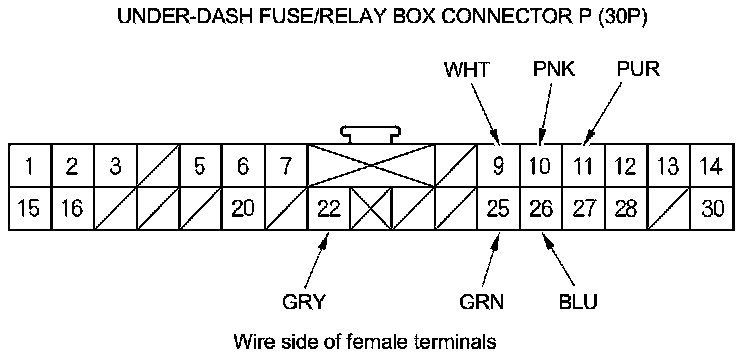 3. Disconnect under-dash fuse/relay box connector P (30P).
