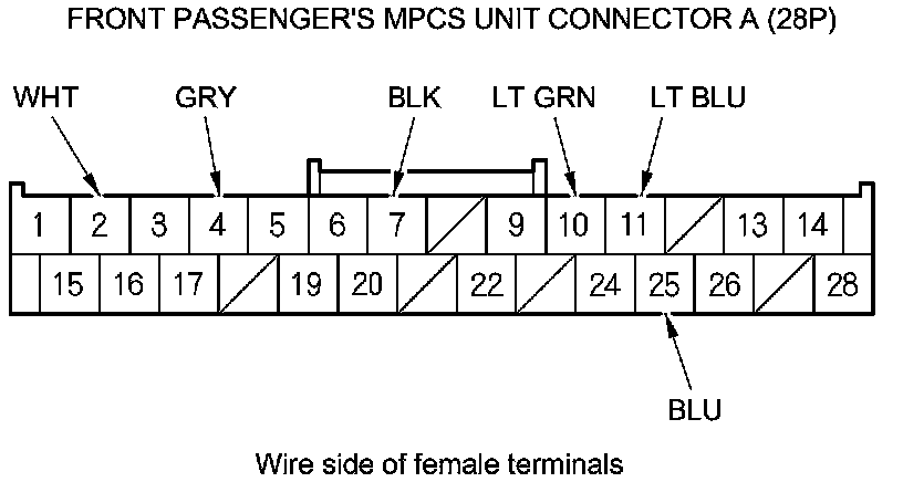 11. Disconnect front passenger's MPCS unit connector A (28P).