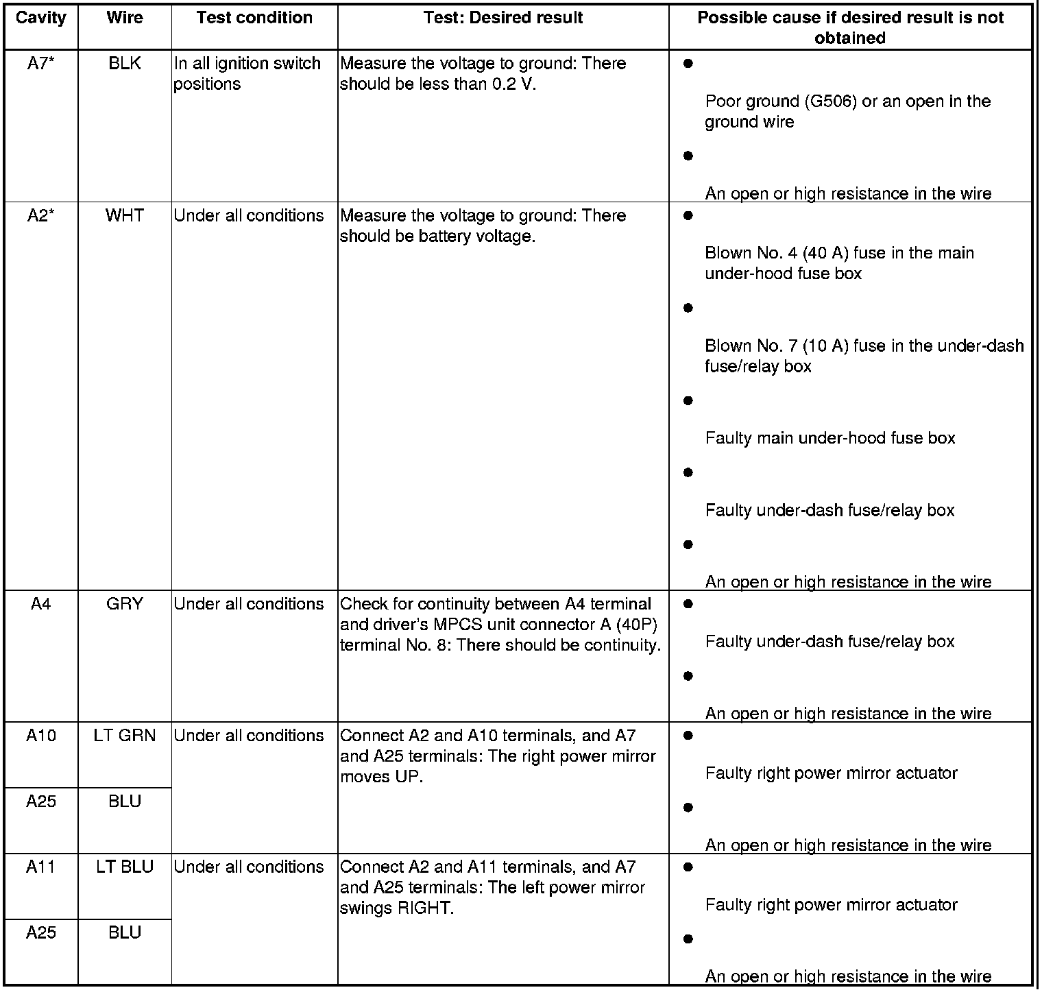 5. Reconnect the connector to the under-dash fuse/relay box, and do the following input tests: