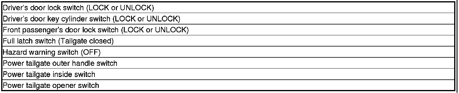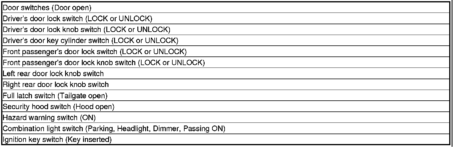 NOTE: If any control unit is faulty and will not wake up, several circuits in the system will malfunction at the same time. In the table below, the control unit is followed by a list of the switches and input signals that can wake it up.