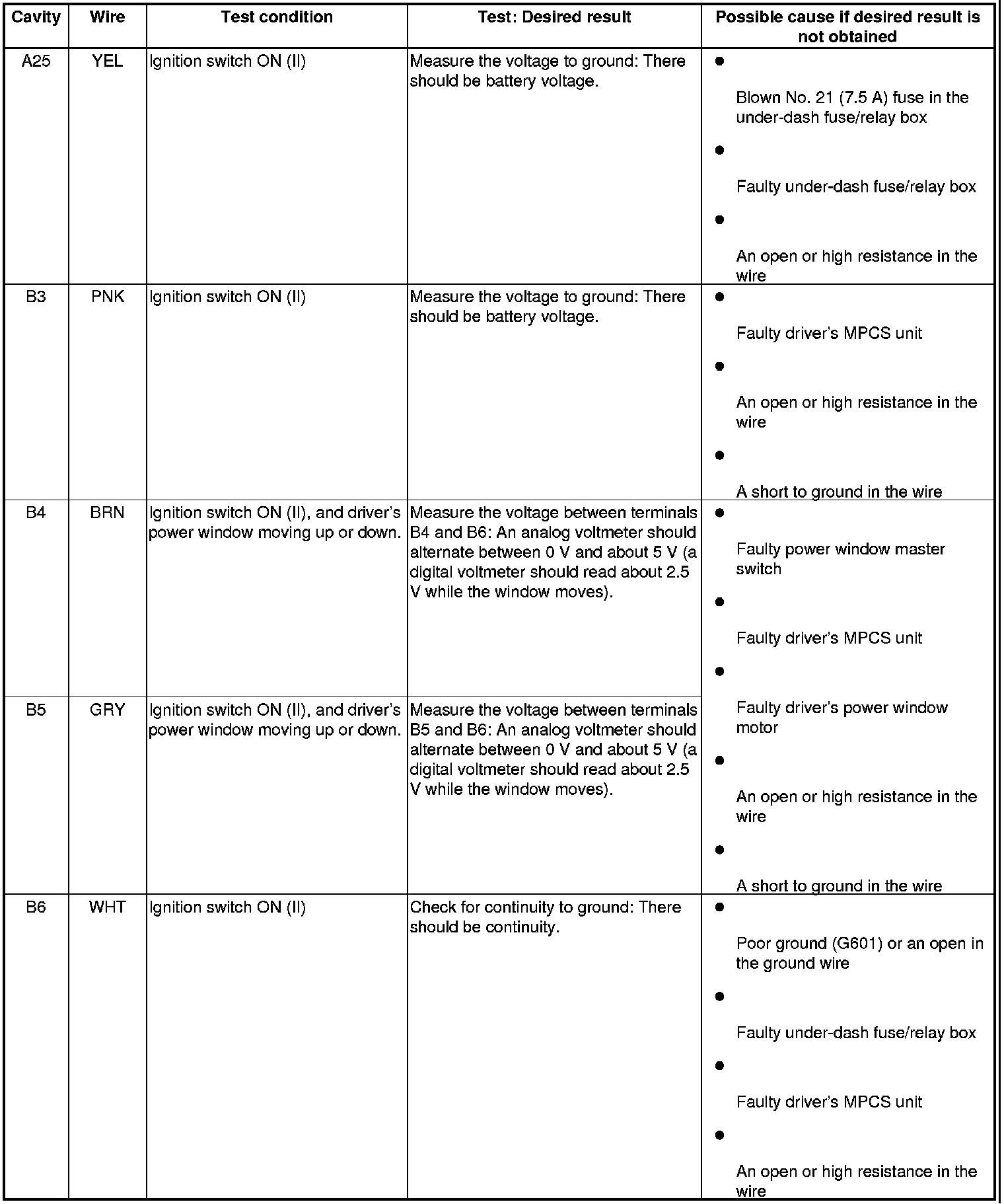 - If all the input tests prove OK, replace the driver's MPCS unit, then go to step 7.