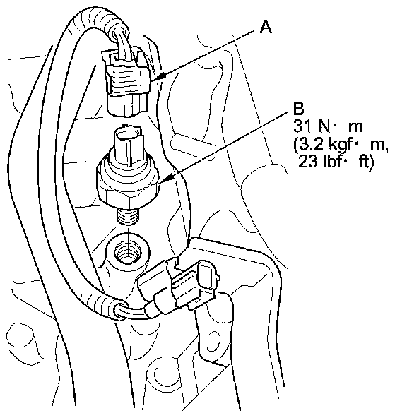 4. Remove the knock sensor (B).