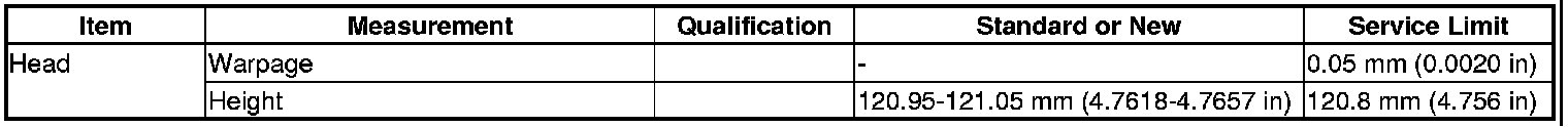Head Specification(s)