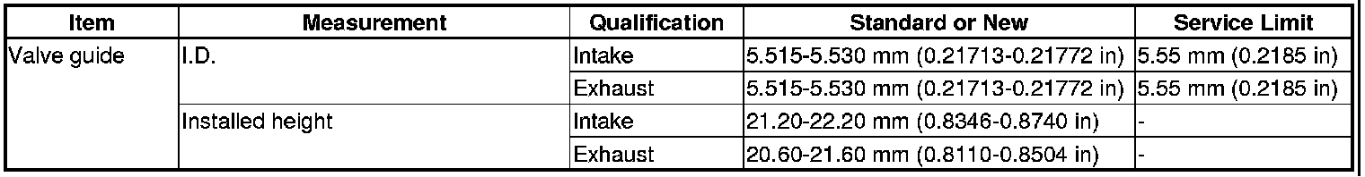 Valve Guide Specification(s)