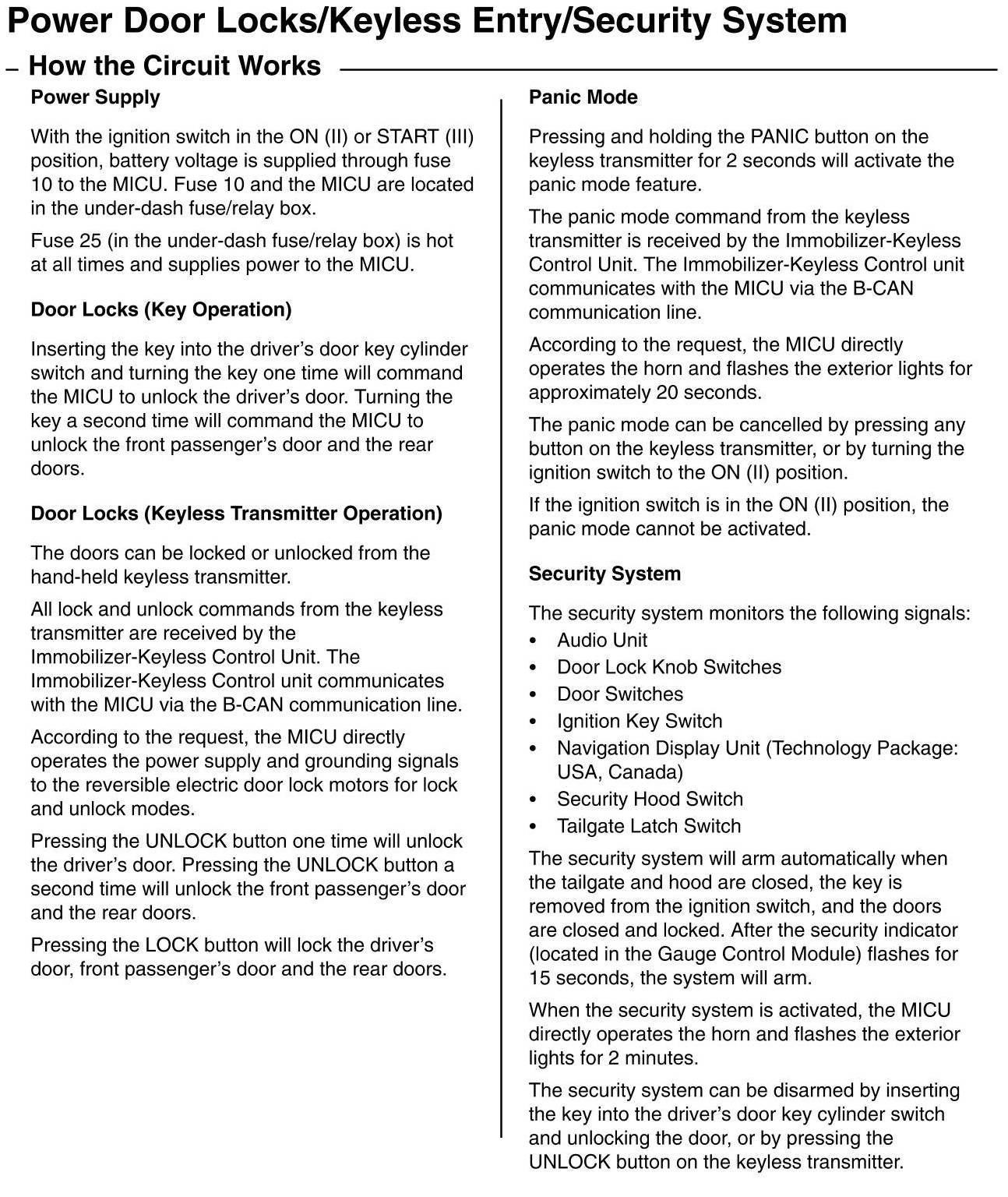 Home >> Acura >> 2011 >> RDX AWD L4-2.3L Turbo >> Repair and Diagnosis >> Body and Frame >> Locks >> Keyless Entry >> Description and Operation >> How The Power Door Locks/Keyless Entry/Security System Circuit Works