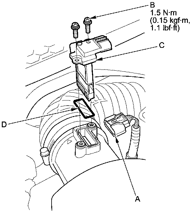 3. Remove the MAF sensor/IAT sensor 1 (C).