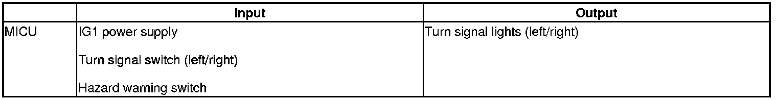 The MICU control of the turn signal/hazard warning lights is based on input signals from the turn signal and hazard warning switches.