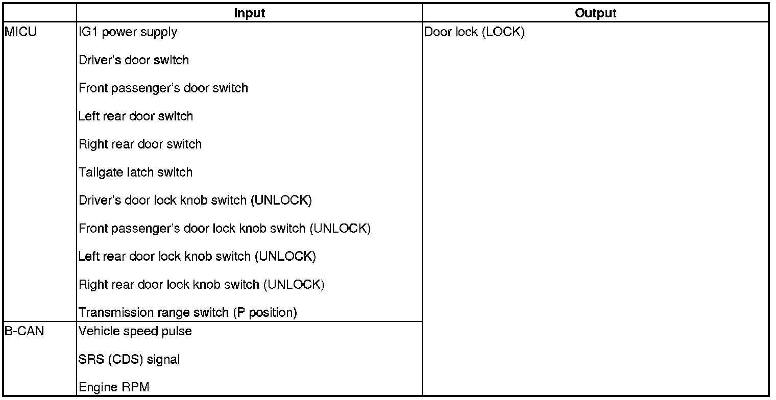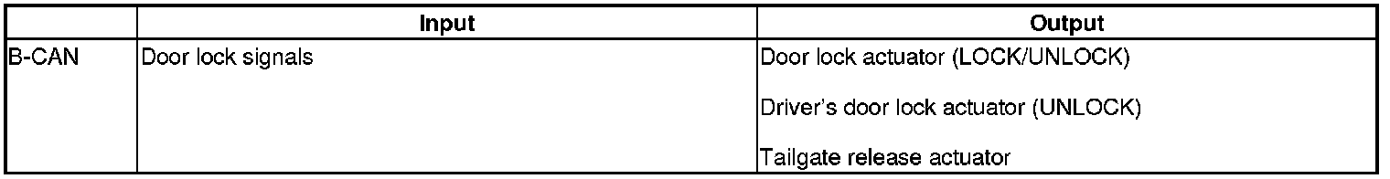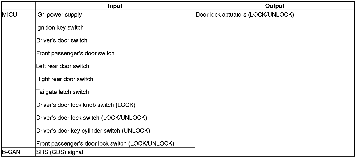 The MICU control of the door lock actuators is based on input signals of each switch and the B-CAN signals.