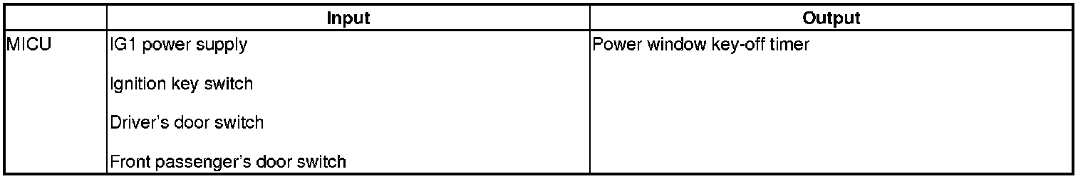 The MICU control of the power windows key-off operation is based on input signals.