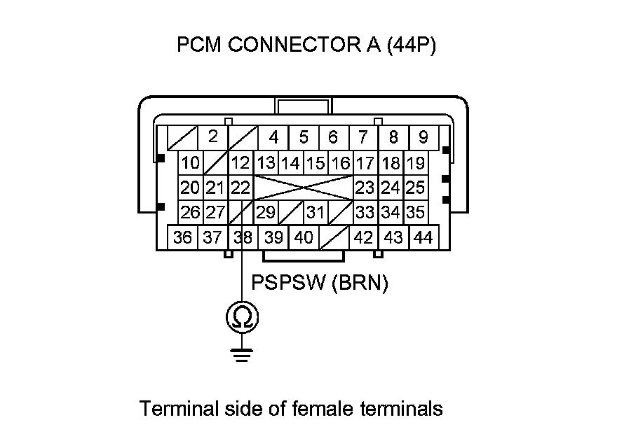 13. Check for continuity between PSP switch 2P connector terminal No. 1 and body ground.