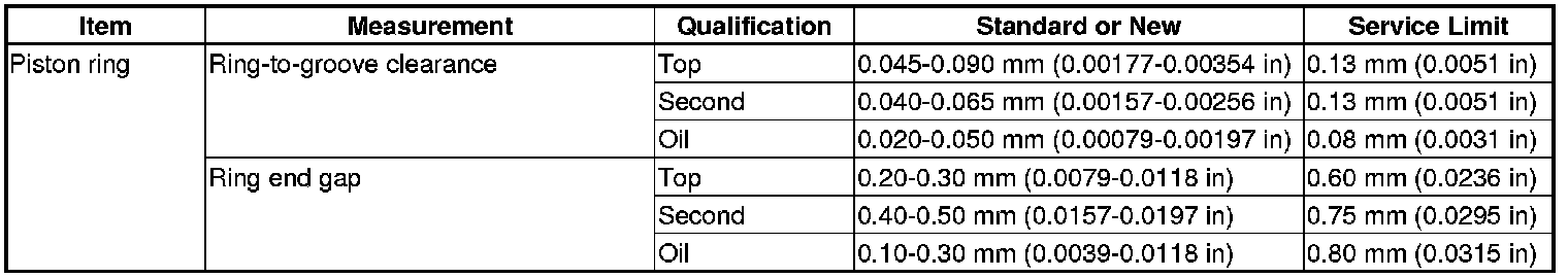 Piston Ring Specification(s)